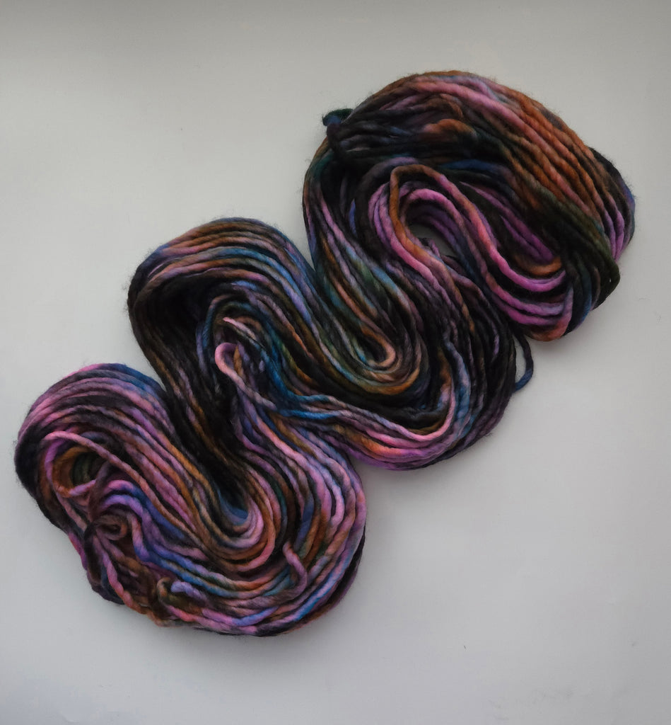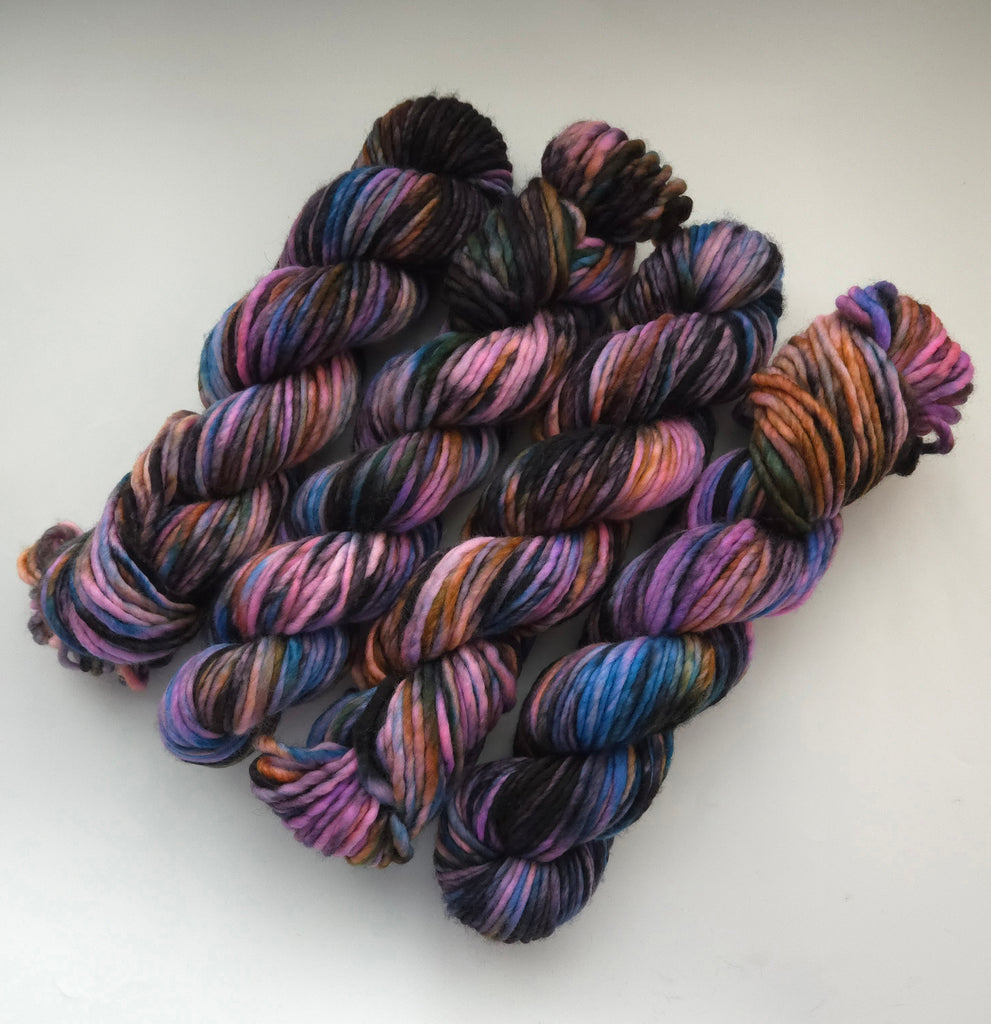 Due to the nature of hand dyed yarn no two skeins are exactly alike. Make sure you purchase enough skeins to finish your product.
