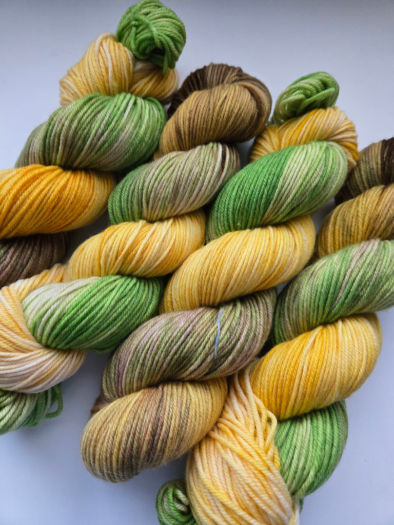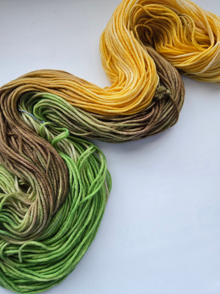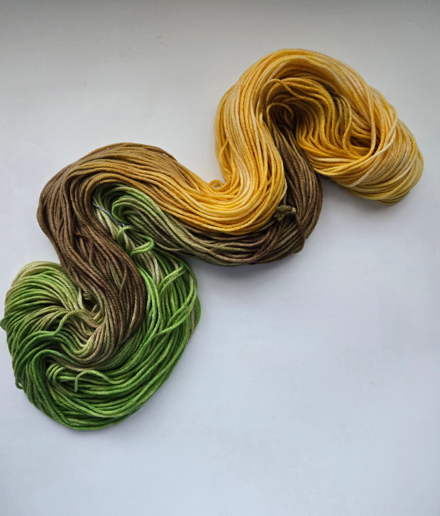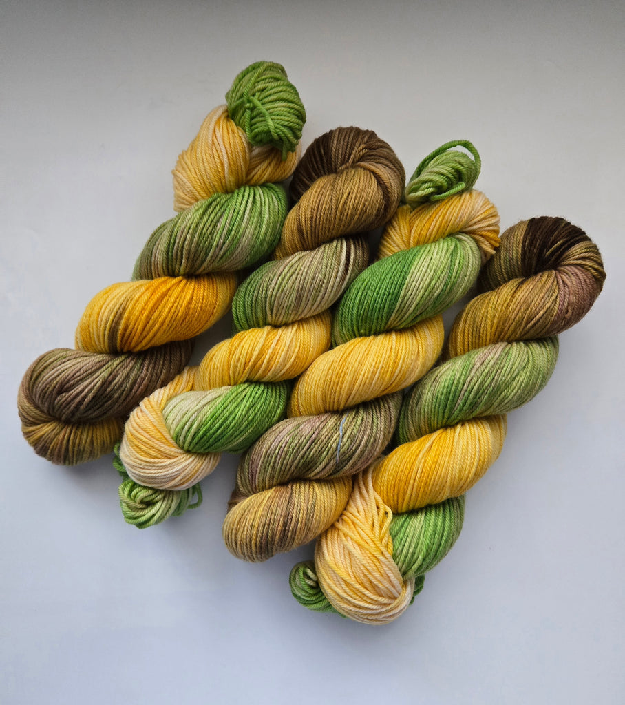This autumnal colorway reminds me of my beloved home state Vermont, with its blend greens, browns and golden yellow.